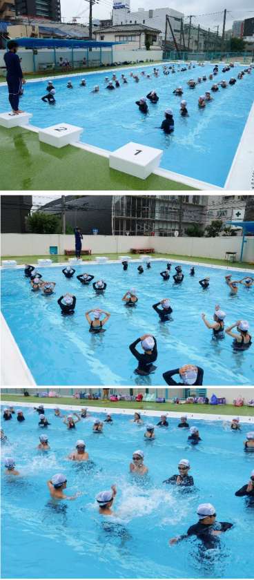 4年生のプールびらきをおこないました。ひさしぶりのプールですね。