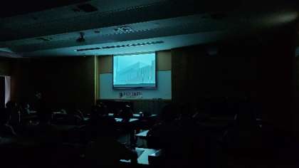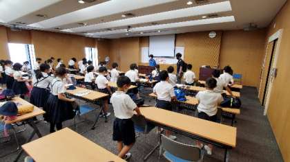 地下鉄を乗り継いで井高野駅で降りて歩いて到着です。記念撮影をして説明を聞きます。