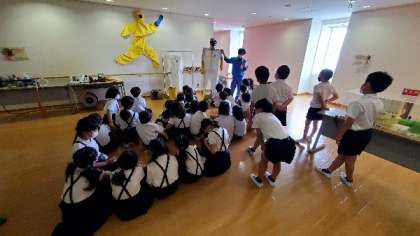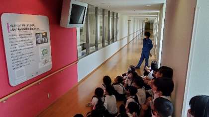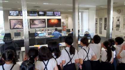 ゴミ焼却場を見学しています。中央制御室を見学です。