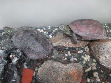 6年生の廊下と理科室前の廊下で飼われているカメたちです。現在4匹います。