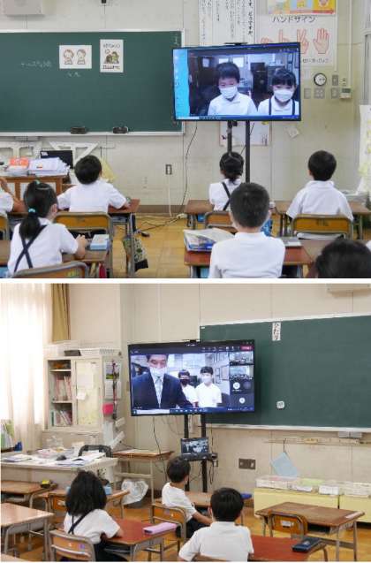 学級休業もあることから、本日の全校朝会はオンラインで実施しました。