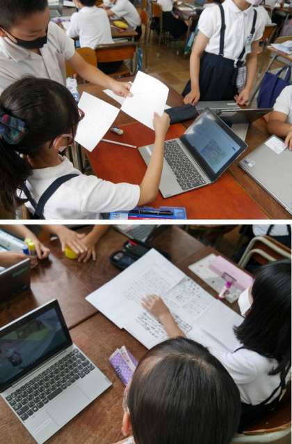 4年生が新聞づくりにがんばっています。社会見学でぃったゴミ焼却場を新聞にまとめました。