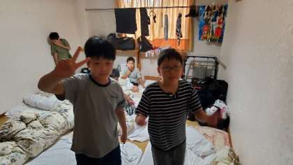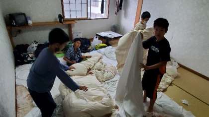 林間学習の2日目の朝です。6時に起床して寝具を片づけます。