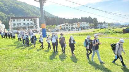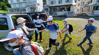 山登りに出発です。凍ったポカリを持っていきます。