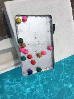 一年生も、大きなプールに慣れてきました。今日は、紅白2チームに分かれて、宝拾いゲームをしました。赤組が勝ちました。