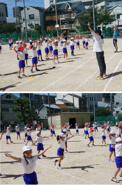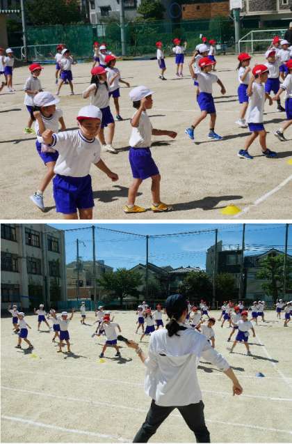 体育館から運動場での練習になってきました。実際の運動場での場所を確認しながらの練習です。
