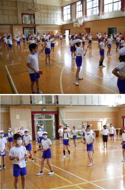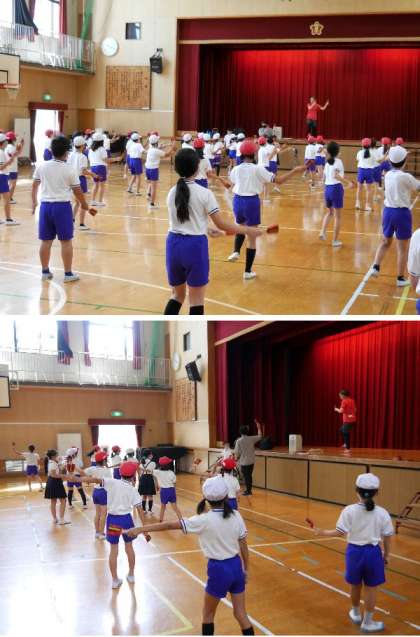 運動会の4年生のダンスはもうひとつあります。新しいダンスの練習が始まりました。両手に小道具をもって踊りますよ。