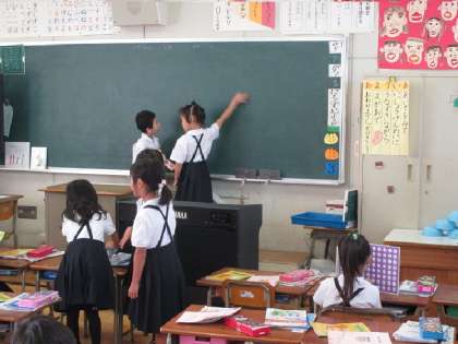 パズルやけん玉を楽しむ子、読書をする子、係の仕事をしている子など、それぞれが自分で考えて行動しています。