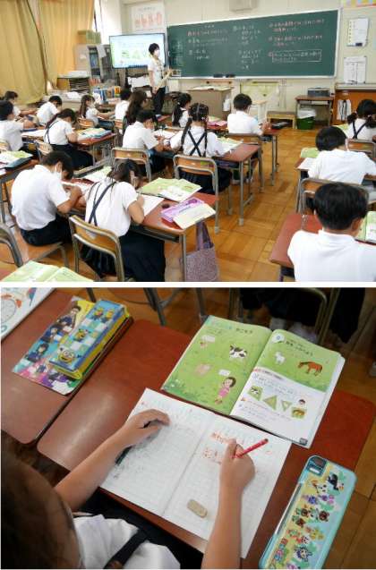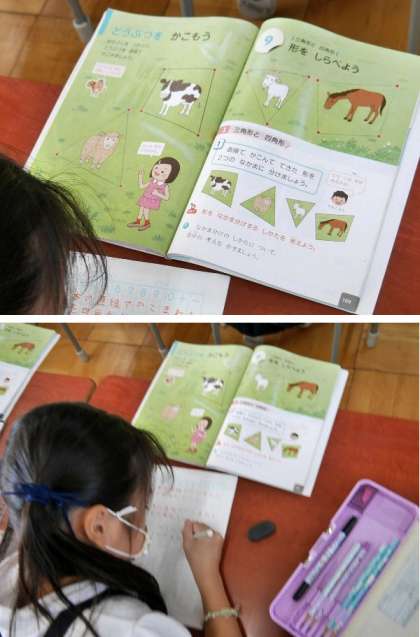 2年生の算数です。動物の絵を線で囲んで、その形を調べて仲間分けしていきます。