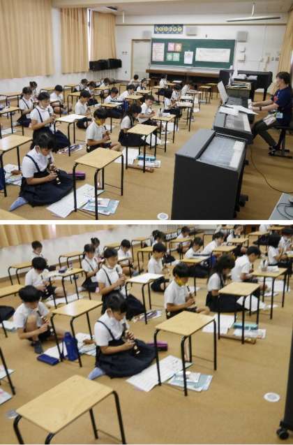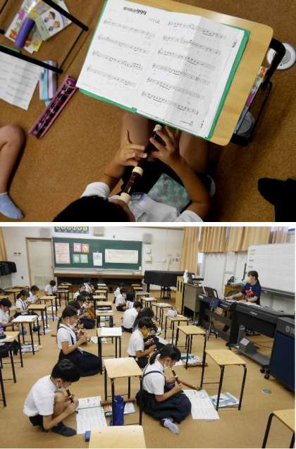 4年生が音楽室でリコーダの合奏をしています。パートごとに練習をしてきています。放課後も子どもたちは残って教室で練習している子もいます。がんばっています。