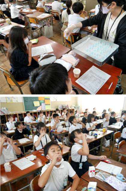 歯科校医先生と歯科衛生士さんにきていただき、4年生で歯みがき指導とフッ化物洗口をおこなっていただきました。「8020」80歳で20本の歯を合言葉に、歯を大切に健康でいられるようにしていきましょう。