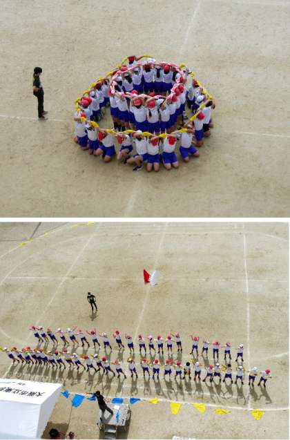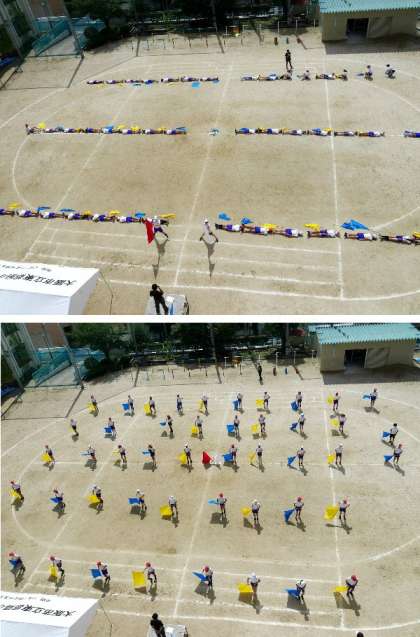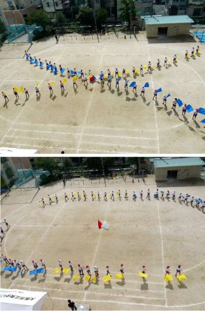 6年生の運動会の団体演技を屋上から撮影しました。順番に配置がかわっていきます。ご家庭でも観覧見どころのご確認ください。