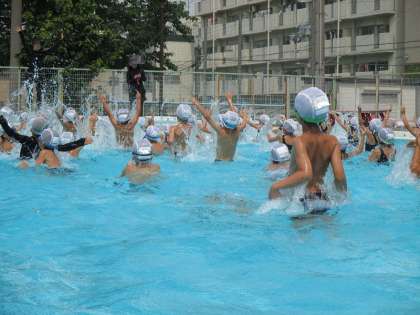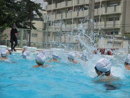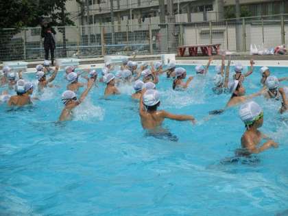 2年生のアヒル体操です。いつも以上に水しぶきをあげて、気持ちよさそうでした。