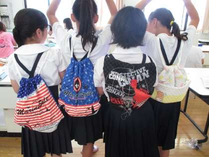 口のひもを通すところがちょっと複雑ですが、がんばって完成させました。