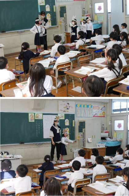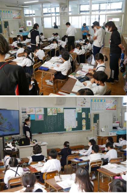 1年生の道徳の授業で研究授業が行われました。「橋の上のおおかみ」という読み物語が題材です。おおかみの気持ちの変化についてかんがえていきます。