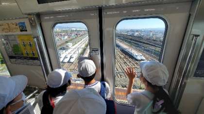 地下鉄 大日駅で乗り換えて、モノレールにのります。途中、新幹線の基地が見えます。