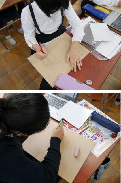 5年生の図工では、スペシャル伝言板を作ります。そのデザインを考えているところです。どんな伝言板になるか楽しみですね。