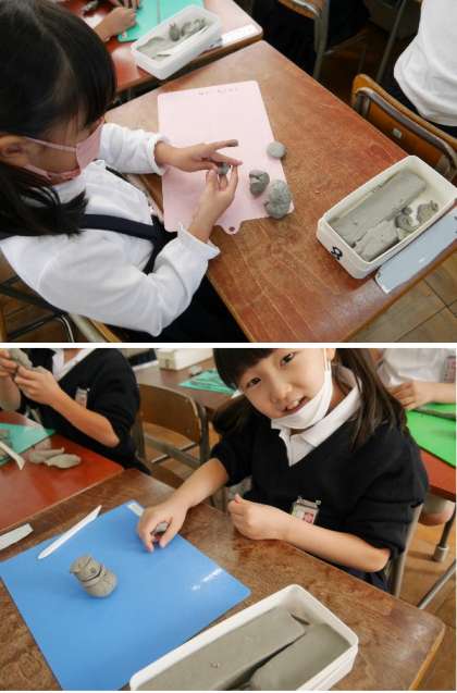 1年生がねんどでいろいろなものを作っています。立体的な造形の感覚を身についていってくれればと思います。