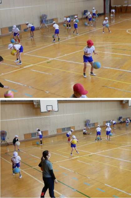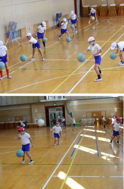 3年生の体育では、ボールを使って運動をします。まずは、ボールに慣れて楽しむところからです。