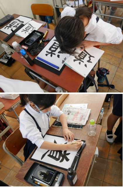 5年生が書写で「道」を練習していました。自分自身の進む「道」を考えながら書いたのでしょうか。