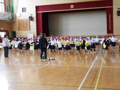 1年生が学私有発表会にむけて、講堂での練習が始まりました。