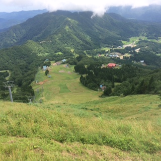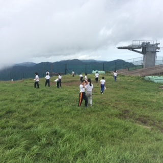 頂上は涼しい風が吹いていて、とても気持ちがいいです。トンボもたくさん飛んでいます。良い景色も全員で見ることができ、最高の気分です。