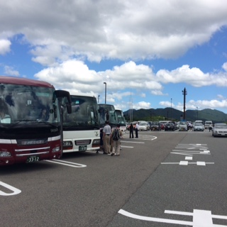 トイレ休憩しています。たくさんのバスや乗用車が止まっています。今のところ、中国道も渋滞が無いようです。