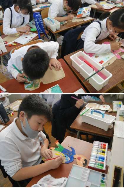 10月31日 5年図工!メッセージボードづくり色づけ
