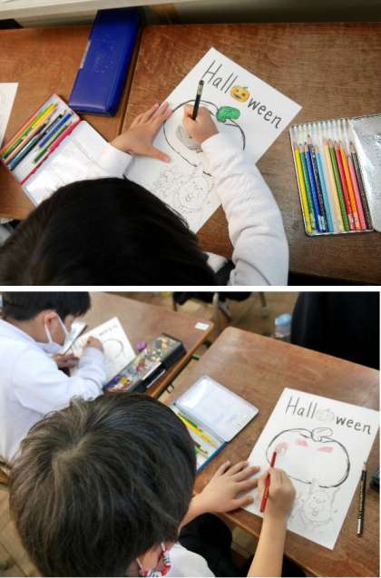 11月4日 1年英語!ハロウィーンの絵をぬろう