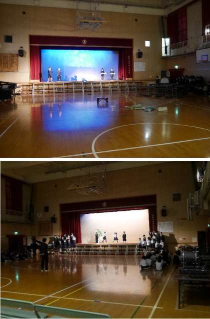 11月13日(日)の参観は、学習発表会です。各学年ごとに趣向をこらした発表をおこないます。今日は最後の練習をどの学年もしていました。放課後には先生たちで会場準備と確認をおこないました。4年ぶりの学習発表会で、児童の半分以上が経験がありません。