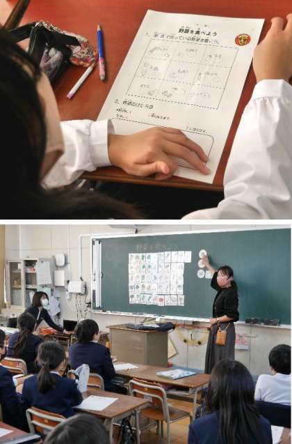 学校の給食で使っている野菜を書いてビンゴで盛り上がっていました。身体を作ったり、調整したり、野菜はとても大事です。とても美味しいですね。