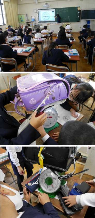 3年生では、重さをはかる学習をしていました。実際にはかりを使って、重さをはかって表していました。
