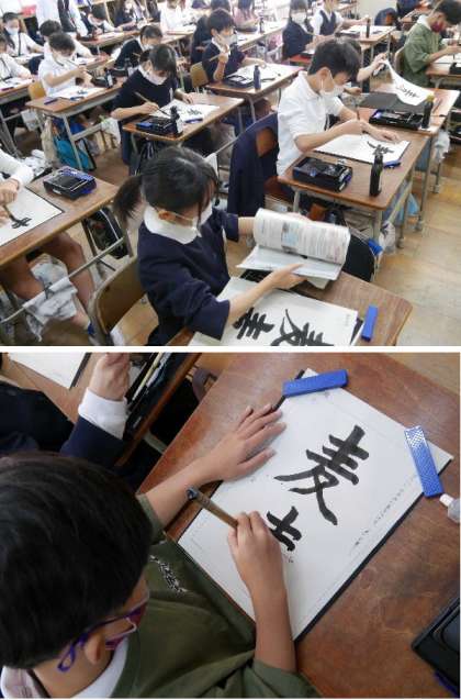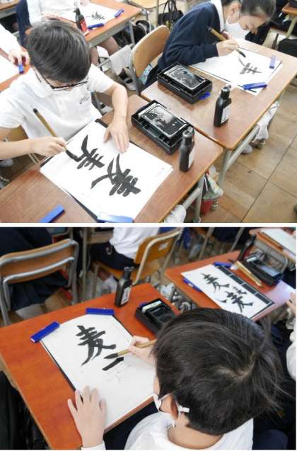 お手本を下敷きして「麦」の練習をしていました。バランスがむずかしいですね。