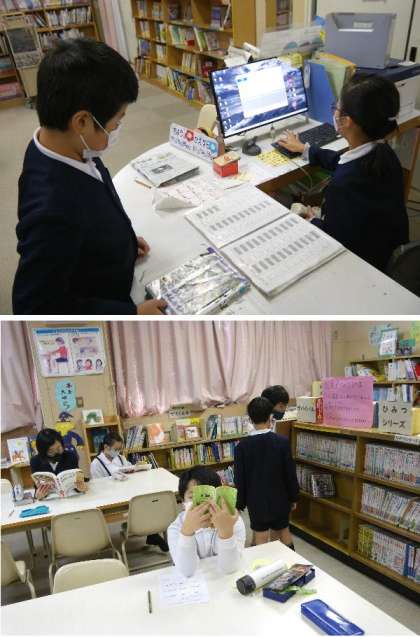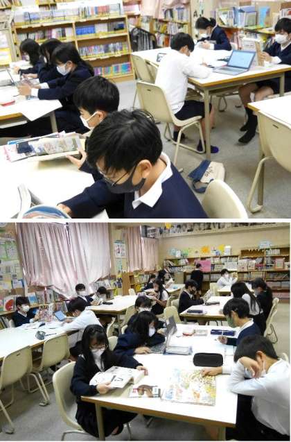 どの学級も、1週間に1回は図書室の時間があります。図書室で本を読んだり、本を借りたりしています。子ども達はとても読書がすきです。静かに興味のある本をじっくり読んでいます。