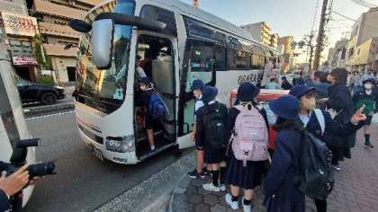 バスに乗り込みます。