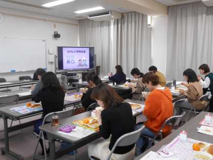 コロナウイルス感染防止のため中止していた「PTA給食試食会」を3年ぶりに開催しました。本来なら、参加している保護者の方同士の交流を深めるという目的もありましたが、今回は子どもたちと同じように前を向いて黙食で食べていただきました。