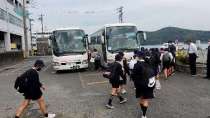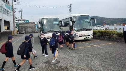 昼食をおえて、学校へむけて出発します。