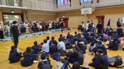 学校に帰ってきました。帰校式をおこない解散いたしました。二日間、無事に活動でき良かったです。お出迎えにたくさんの保護者の方にきていただきありがとうございました。