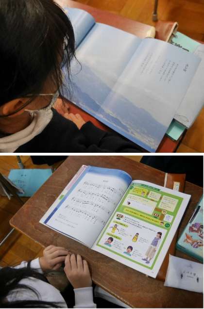 3年生が「ふじ山」の写真を見ながら、歌を歌っています。
