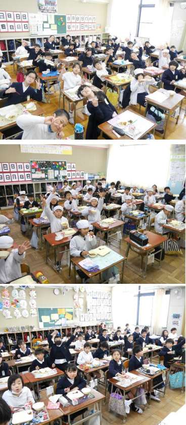 今日の献立は、鶏肉と野菜の煮物、ひじき豆、かぶのゆず風味、ごはん、牛乳でした。各教室では、2学期最後の給食をおいしくいただきました。