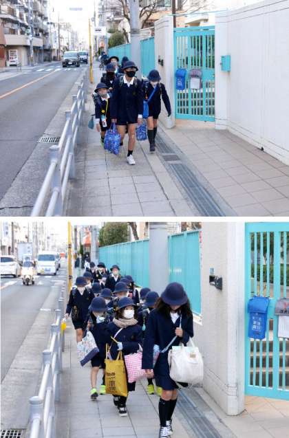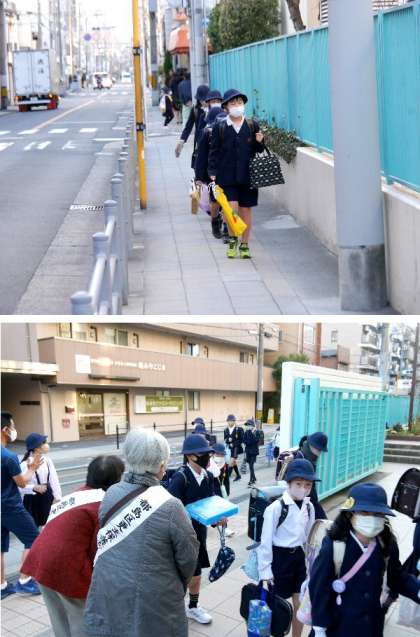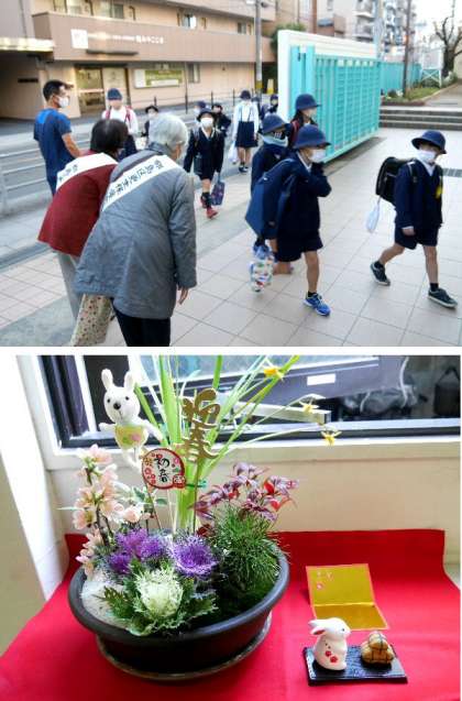 今日から3学期が始まります。子ども達は元気よく集団登校してきました。地域の更生保護女性会の方も登校時にあいさつにきてくれました。