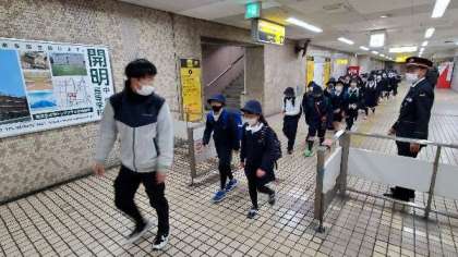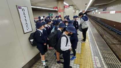 5年生がはじめての社会見学に出かけます。地下鉄で、読売新聞まで行きます。