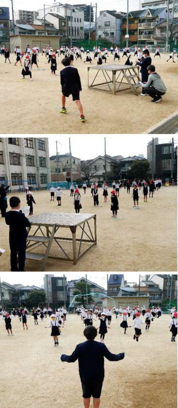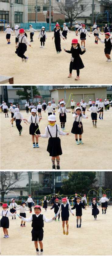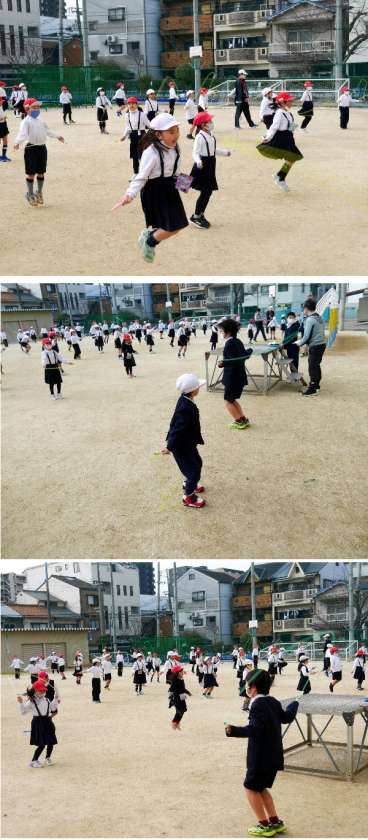 今日のなわとび週間は、2年生がおこないました。元気よくとんでいます。