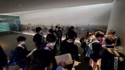 ピースおおさかに入って見学します。戦時中の貴重な写真が展示されています。