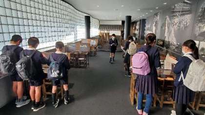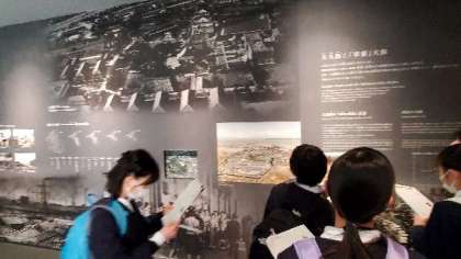 ピースおおさかで、戦時中のくらしなどを学習しています。