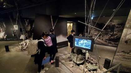 大阪の大空襲について見学します。焼夷弾などが展示されています。