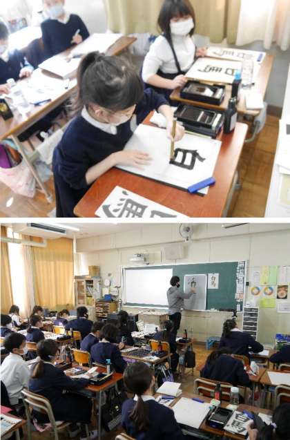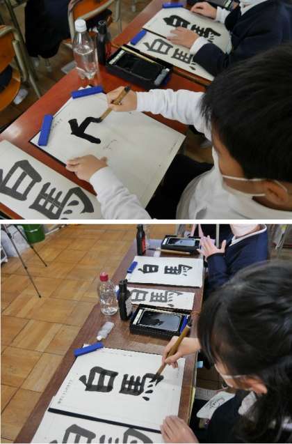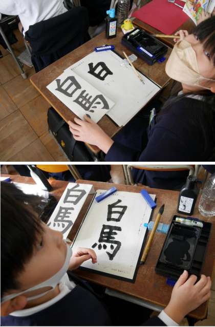 4年生が書写で「白馬」と書きました。