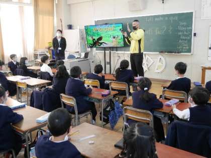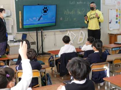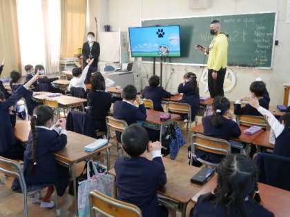 2年生にクリス先生が来てくれました。英語は5年生と6年生は教科となりました。3年生と4年生は英語活動としてテキストで学習します。