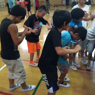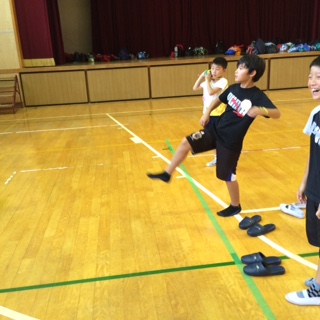 暑い体育館の中ですが、みんな楽しそうに遊んでいます。