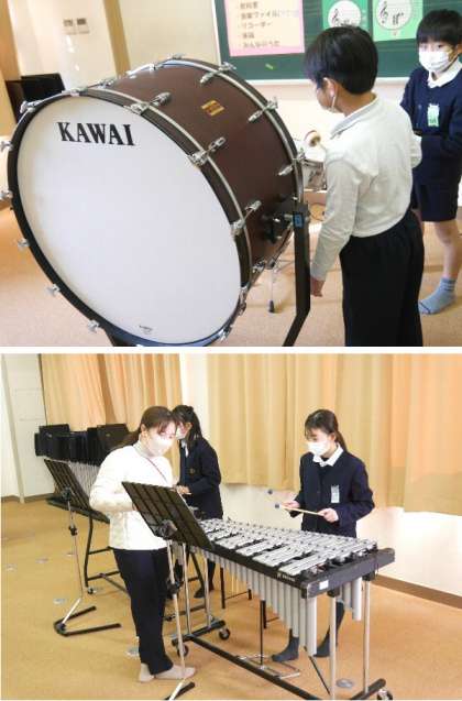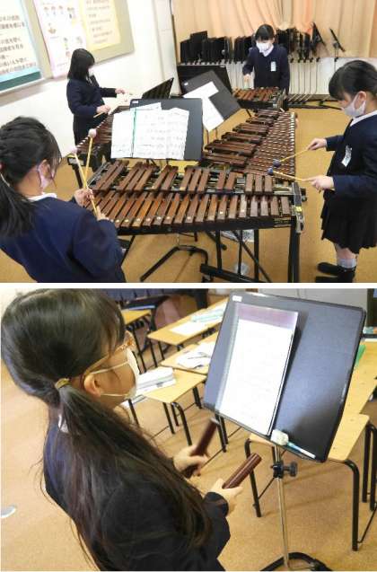 4年生が合奏のために、各楽器ごとに練習をがんばっています。